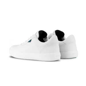 Minimalist easy-to-clean vegan leather sneakers with a padded tongue and waterproof Dyma-tex® technology for style versatility.